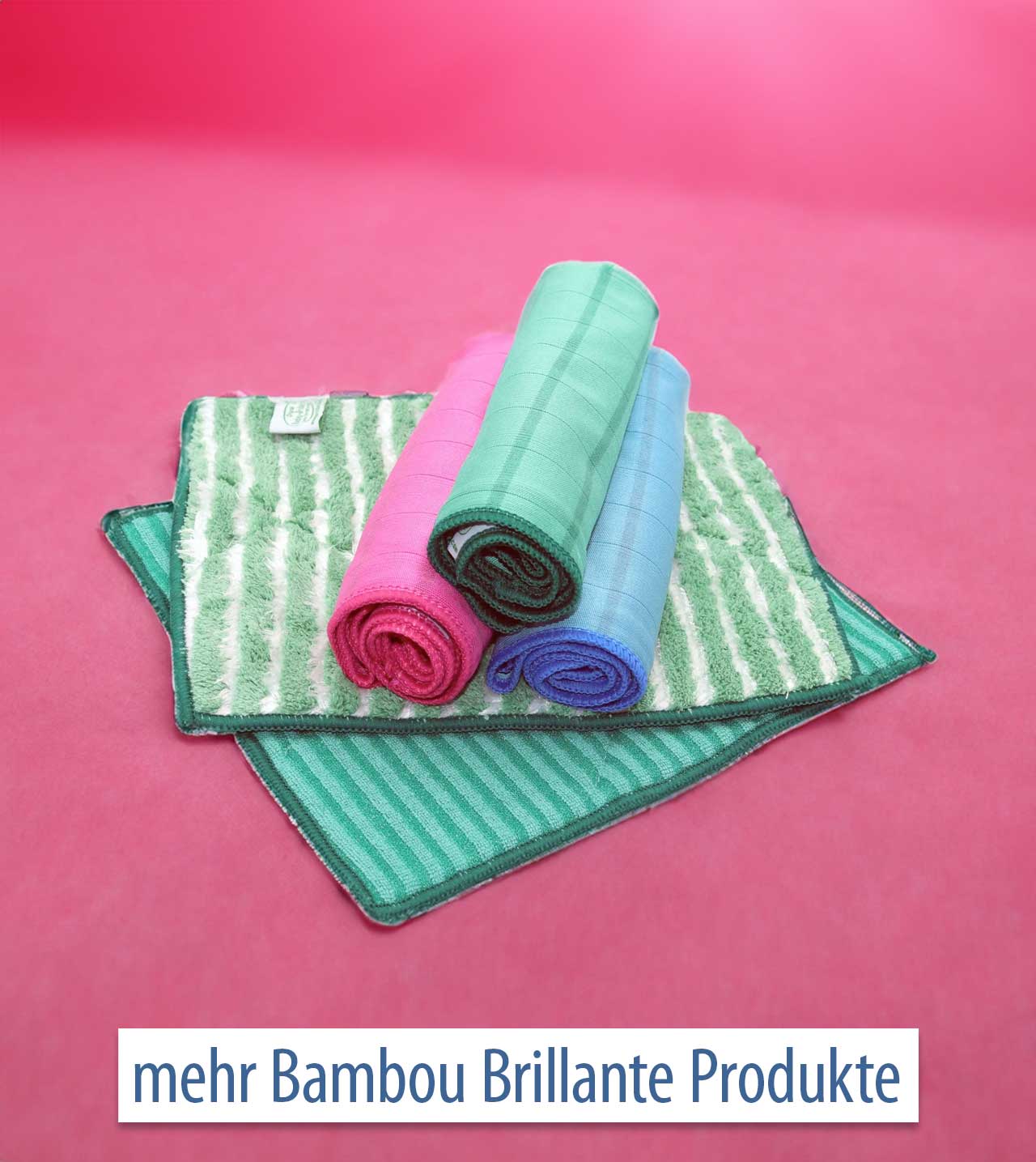 Neo-Bambus Vorreinigungstücher 25 x 20 cm Diese Tücher bestechen durch eine Hohe Schmutz- und Wasseraufnahme und lösen selbst stärkste Verschmutzungen, dank dem genialen 2-Seiten System mit einer rauhen und einer feineren Seite, für unempfindliche Oberflächen verwendet man die rauhere Seite und selbst hartnäckigste Verschmutzungen, wie z.B. bei Backöfen und Ceran-Kochfeldern, Gartenmöbeln, Kunststoff-Fensterrahmen usw., lösen sich ohne große Mühe, gleichzeitig ist dann aber auch mit der feinen Seite den Schmutz auf empfindlichen Flächen zu lösen, ohne zu zerkratzen. Dort, wo Oberflächen schnell durch andere Tücher beschädigt werden können, löst die feine Seite ganz schonend jede Art von Verschmutzung, z.B. Fettdunst an den hochsensiblen Lackküchenfronten, zudem sind diese Vorreinigungstücher die ideale Vorbereitung um anschließend mit den Neo-Bambus Fasertüchern die Oberfläche hochglänzend und einfach zu trocknen. Die Schwammflieseinlage ermöglicht zudem eine hohe Wasseraufnahme, ein perfektes "festhalten" dieser Wassermenge, was unter anderem beim Reinigen in senkrechter Position wie bei Fenstern, Fensterrahmen und Badezimmerfliesen, dafür sorgt das nichts mehr tropft oder in die Ärmel läuft. Durch die Verarbeitung des Bambusrohstoffes, reinigen mit Hilfe der Natur. Neo-Bambus Fasertücher / Poliertücher 50 x 40 cm Durch diese ultrasaugfähige Naturfaser aus Bambusrohstoff, nehmen diese neuen Neo-Bambusl Tücher sehr schnell und extrem perfekt die Feuchtigkeit auf und hinterlassen trockene, streifenfreie und hochglänzende Oberflächen. Ganz ohne große Mühe und Druck beim arbeiten auf Fensterscheiben, Spiegeln, Küchenfronten, Chromspülen, Geschirr, Gläser, Bestecke, Fliesen und Duschkabinen. Natürlich darf man diese seidenweichen Tücher mit ihrer geschlossenen Oberfläche auch bei Materialien die extrem empfindlich sind, ohne Bedenken einsetzten. Schon beim ersten anfassen der Tücher, spüren man den Unterschied. Dadurch vergrössert man die Einsatzmöglichkeiten und Anwendungsgebiete und reinigt damit Bildschirme, beschichtete Duschen und Waschbecken, Hochglanz-Küchenfronten, Acrylglasmöbel und auch den Autolack. Zusätzlich sorgt die im Bambusanteil enthaltenen Stoffe für eine antibakterielle Sauberkeit und ist somit ideal für den geamten Haushalt, wie z.B. Kinderzimmern Bad, Küche aber auch in Gastronomie und Gewerbe